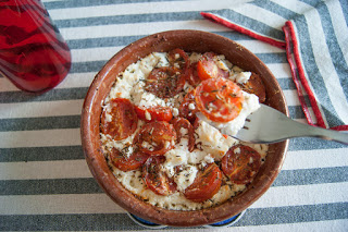 3. Metemos la cazuelita con los tomates al horno -previamente precalentado- a 180ºC durante unos 10 minutos, hasta que veamos el queso fundido y que empieza a dorarse ligeramente.Tomates al horno